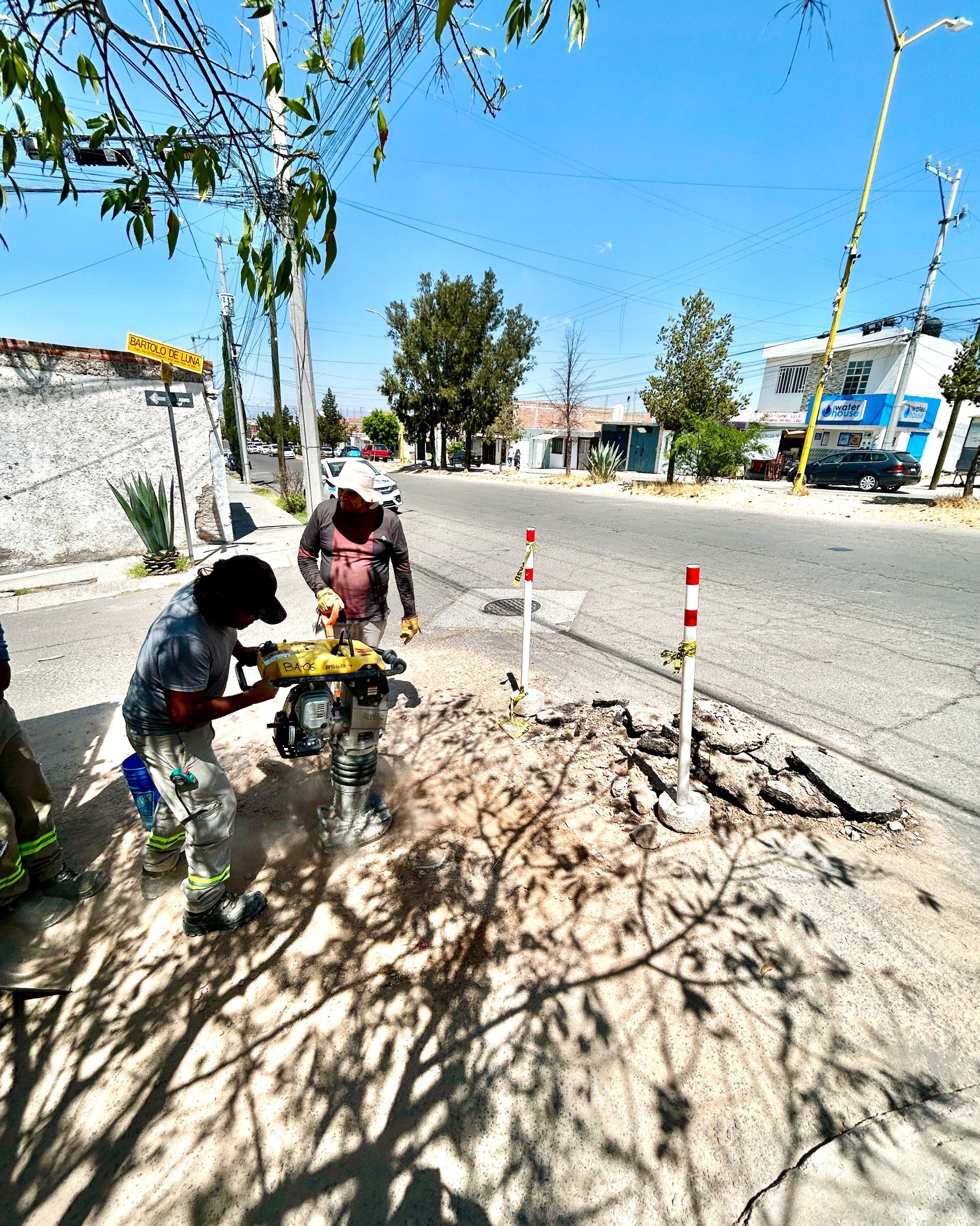 En el fraccionamiento V.N.S.A. Sector Guadalupe, específicamente en el cruce de las calles Federico Méndez y Bartolo de Luna, personal del organismo realizó labores de bacheo con el objetivo de mejorar las condiciones de tránsito en la zona.