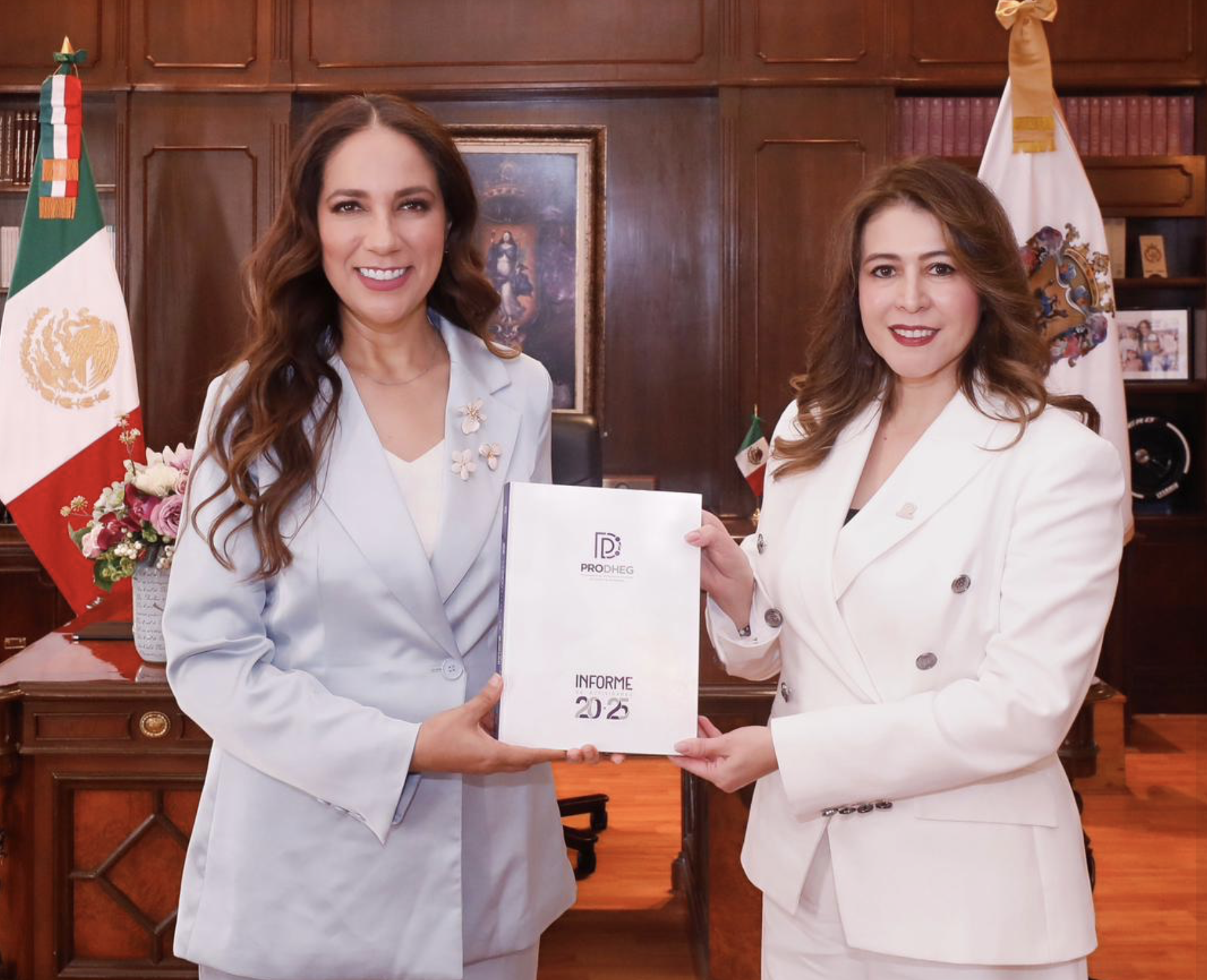La procuradora también informó que la PRODHEG obtuvo una acreditación nacional como entidad certificadora y evaluadora por parte del CONOCER, lo que permitió la emisión de 944 certificados de competencias laborales.