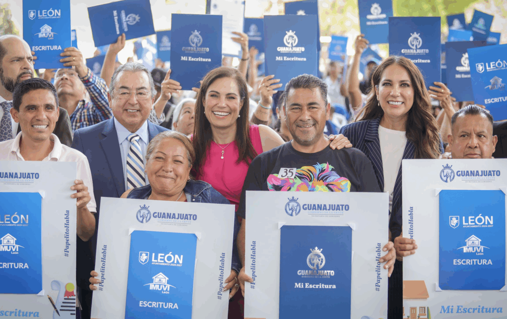 Durante la entrega más reciente, 300 familias recibieron sus escrituras, de las cuales 89 fueron gestionadas por el Instituto Municipal de la Vivienda de León y 211 por la Secretaría de Gobierno del estado.